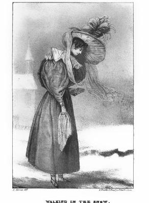 Writing in 1832, Frances Trollope observed American women’s penchant for wearing fashionable shoes, no matter the weather. “They walk in the middle of winter with their poor little toes pinched into a miniature slipper,” Trollope wrote, “incapable of excluding as much moisture as might bedew a primrose. I must say in their excuse, however, that they have, almost universally, extremely pretty feet.” (Francis Trollope, Domestic Manners of the Americans, 1832. )
