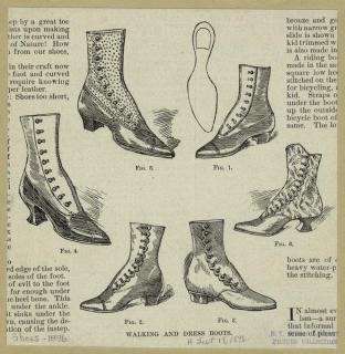By the late 19th century, the plethora of shoe stores was accompanied by the shoe buying guide in various forms and the consumer was deluged by instructions concerning all things shoe related. Advertisements, manuals, and articles provided information from proper care of the feet to the thoughtful selection of shoes.
