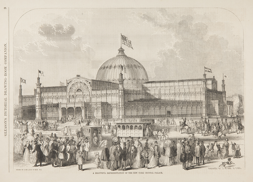 In July 1853 two prominent news weeklies, the Illustrated News (July 23 and July 30, 1853) and Gleason’s Pictorial Drawing-Room Companion (July 23, 1853), published commissioned engravings depicting events during the opening of the Crystal Palace.