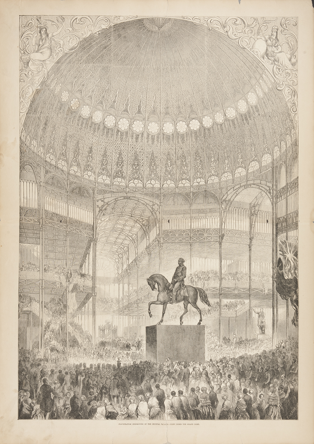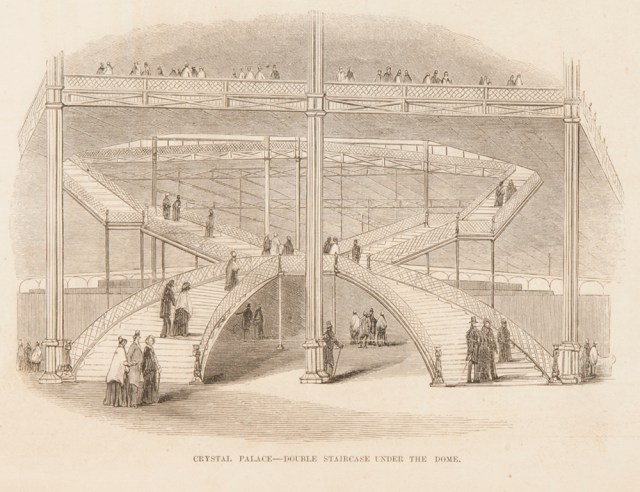 | “The view of the dome can hardly fail to gratify and surprise the beholder, from the contrast of its vast size and its extreme airiness.” A Day in the New York Crystal Palace (1853). |
