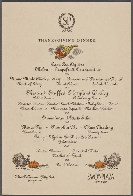 Thanksgiving dinner at the Hotel New Yorker, at the height of the Great Depression, cost $2.25.