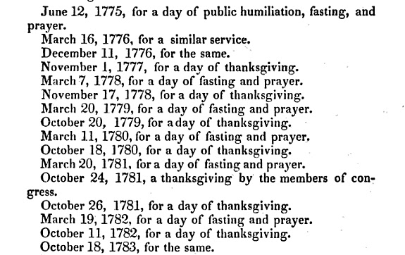 In the late 18th century and early 19th century, more than one day of Thanksgiving was often observed, along with days of “public humiliation, fasting and prayer.”