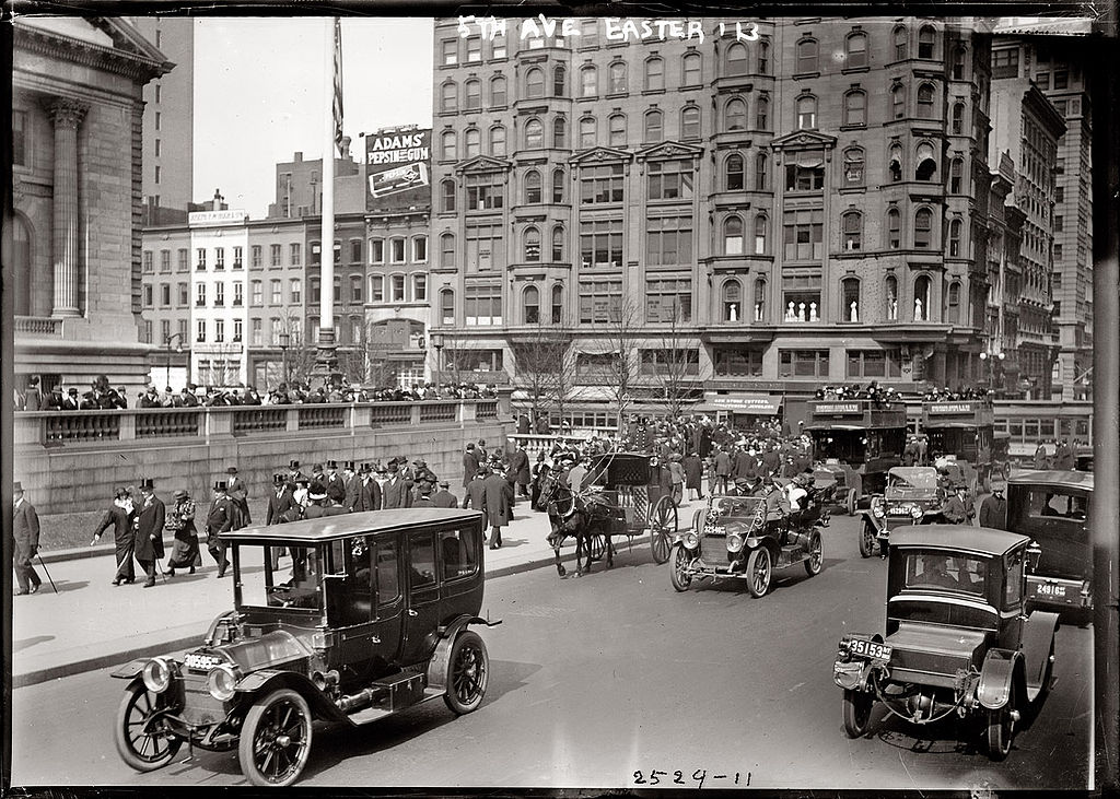 Early Adopters in the Easter Parade, NYC. Autos on Display. |