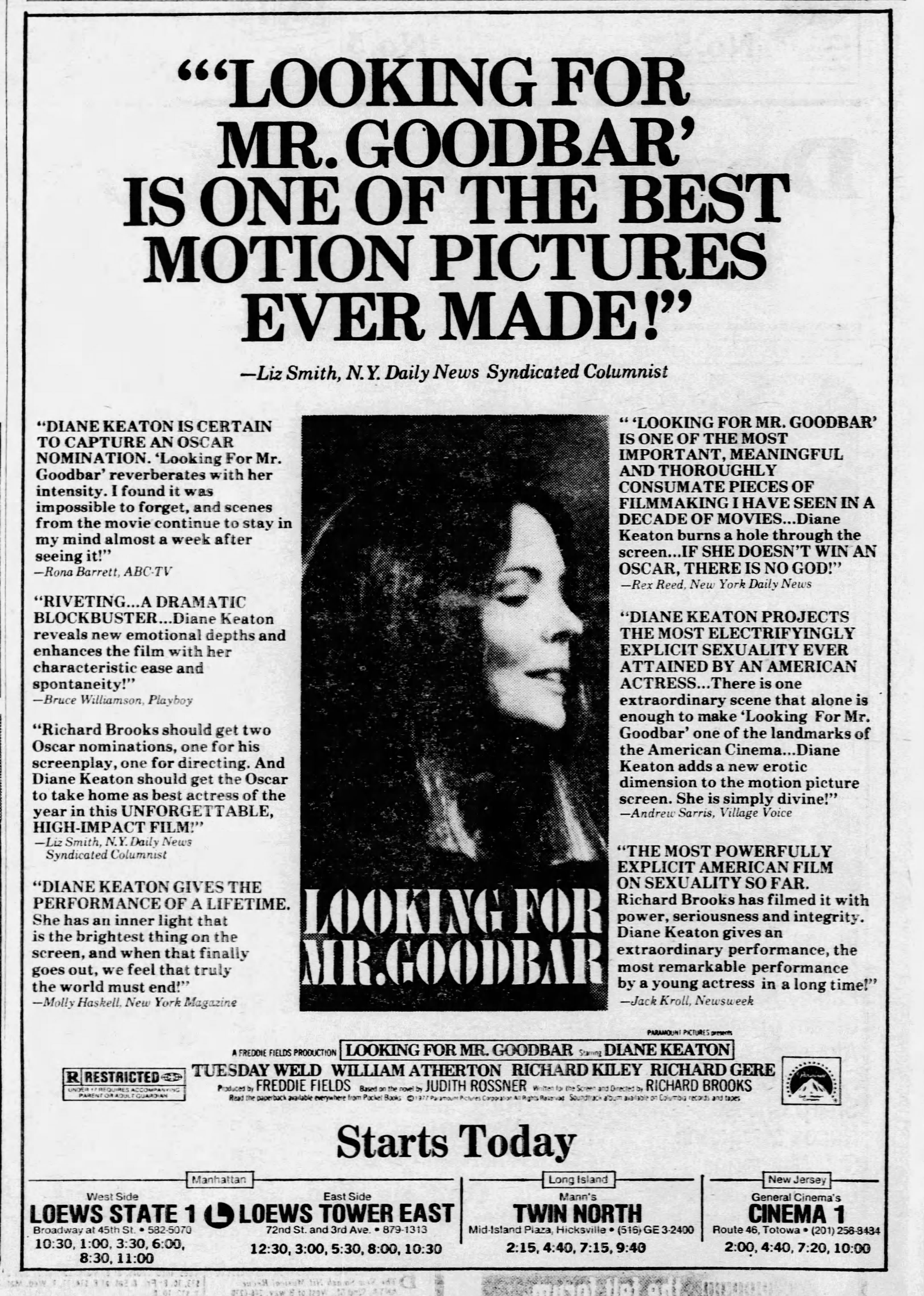Keaton did win a best actress Academy Award. But not for Looking for Mr Goodbar. She won it for another film she appeared in that same year: Annie Hall.